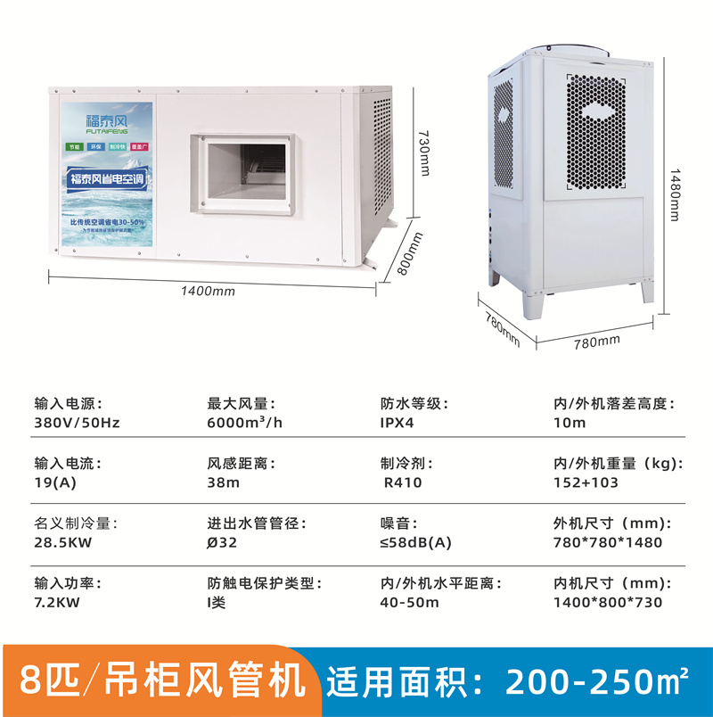 .節能省電、同等面積安裝比傳統空調省電30~50%,覆蓋面積大一臺5P的可以覆蓋200個平方車間降溫,出風口溫度可以做到13-16度。車間溫度可做到20-26度適合人體體感溫度。