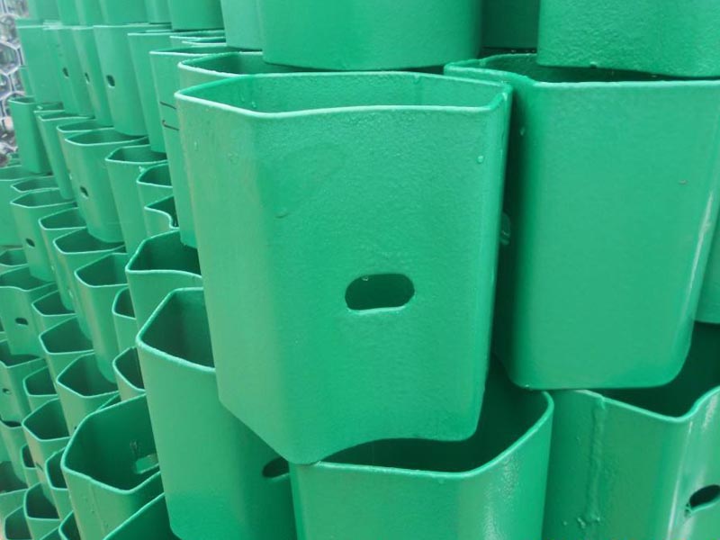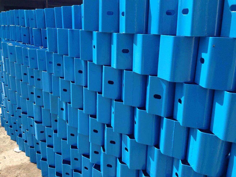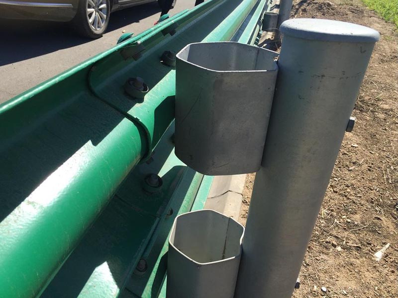 護欄板的防阻塊是波形梁與立柱之間的承力部件,適用于交通流中車種比較復雜,擔心碰撞車輛可能會在護欄立柱處拌阻的路段;或為了減少路緣石對碰撞車輛運動軌跡產生不利影響的路段。防阻塊本身就是一個吸能機構,因此,可以使護欄在受到碰撞后逐漸變形,有利于能量吸收,減少乘員傷亡;同時防阻塊固定在立柱與波形梁之間,參與護欄整體作用后,可以使碰撞力分配到更多跨結構上,從而增加護欄的整體強度。