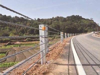 鍍鋅纜索護欄是柔性護欄的主要代表形式,它是一種以數根施加初張力的纜索固定于立柱上而組成的結構,它主要依靠纜索的拉應力來抵抗車輛的碰撞,吸收碰撞能量。纜索護欄屬柔性結構,車輛碰撞時纜索在彈性范圍內工作,可以重復使用,容易修復。立柱間距比較靈活,受不均勻沉陷的影響較小。風景區公路采用纜索護欄較為美觀。積雪地區,纜索護欄對掃雪的障礙稍少。